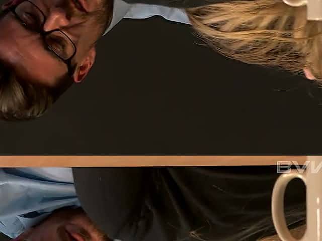 Big buttoned blond secretary Clarissa gives steamy deep throat to her 4 eyed boss for hard doggy fuck