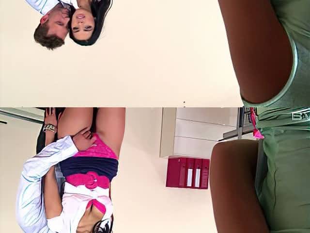 Bosomy office brunette beauty gets her slit fucked from behind properly