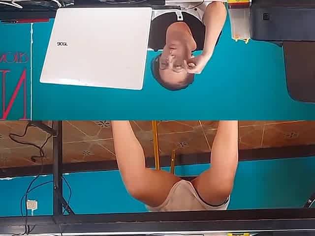 SECRÉTAIRE La secrétaire montre la chatte de la caméra sous le bureau 1