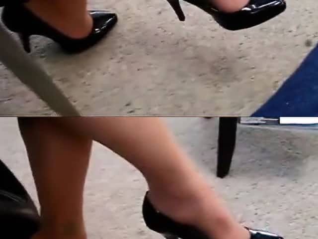 candid collegue shoeplay ses heels elle sais et en rajoute