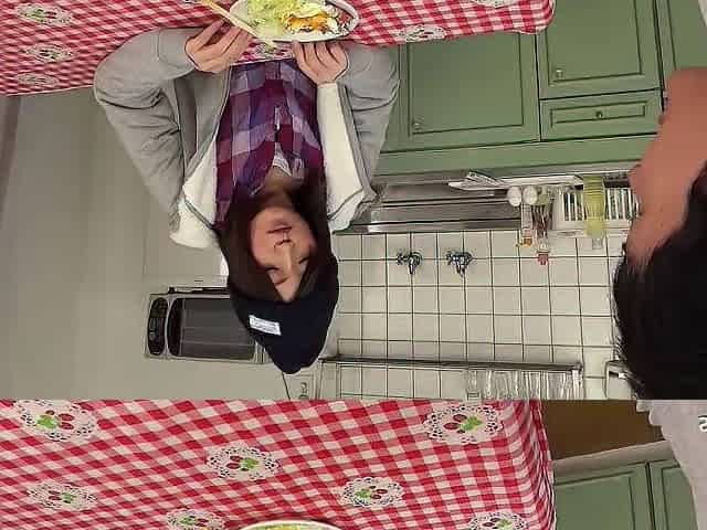 Brunette Seduced Lover In The Kitchen And Gave Him On The Table - Justin Hunt