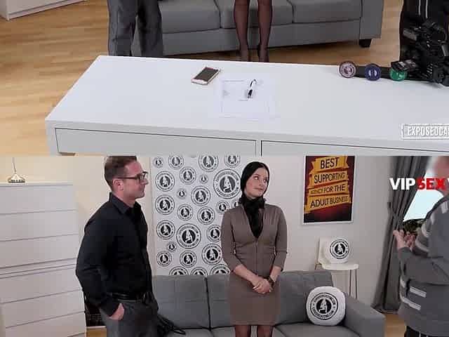 FemaleAgent Hawt golden-haired seduces delightful brunette hair in castin
