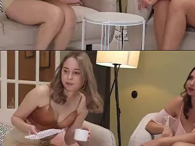 Blonde Milf seduces teen shy brunette
