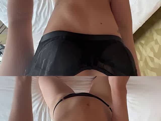 Stepsister helps stepbrother quickly cum in her panties while parents wait downstairs