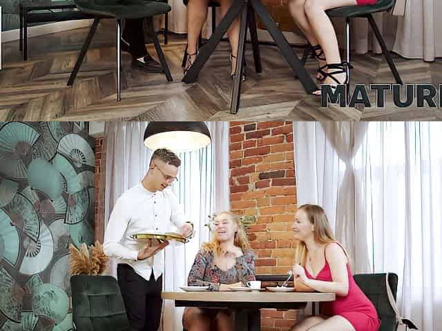 Mature lesbian shop manager seduces timid employee for steamy sex session