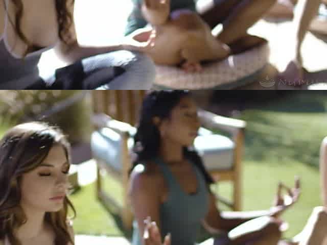 Lesbian Ebony Yoga Instructor Seduces a White Student for Outdoor Sex