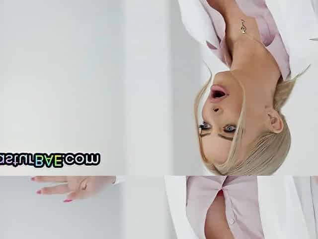 Seductive blonde teen Emma Mae gives her teacher the deepest throating experience