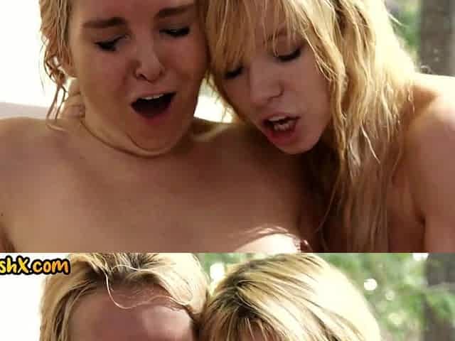 Blond teen tempted by BFs for lesbo toying