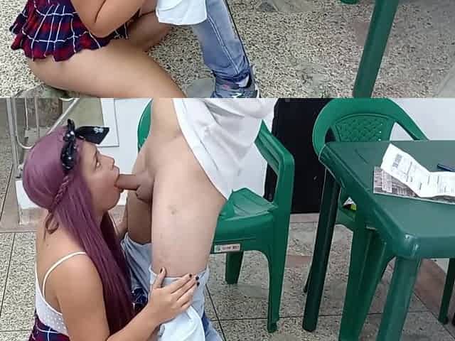 Cutie seduced stepmom's new BF and sucked dick in risky scene