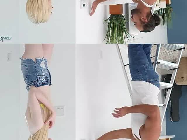 Handyman Tempted by Concupiscent Client Gives Her an Climax and a Creampie - Jess & James