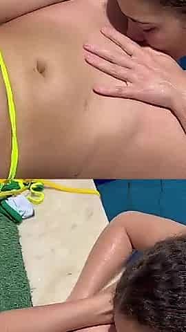Hawt moist lesbo makeout session in the jacuzzi for neighbors to watch