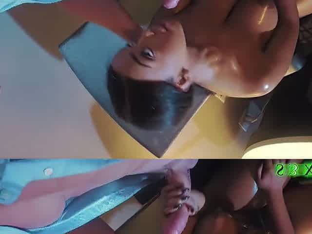 Big titted glory hole blowjob slut fucks and loves facial