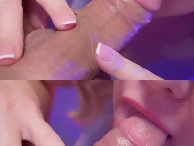 Close-up oral-job ASMR with large ejaculation