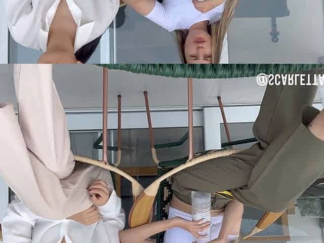 Sensual lesbian hookup on the veranda with Vanessa Veracruz and Serena Blair