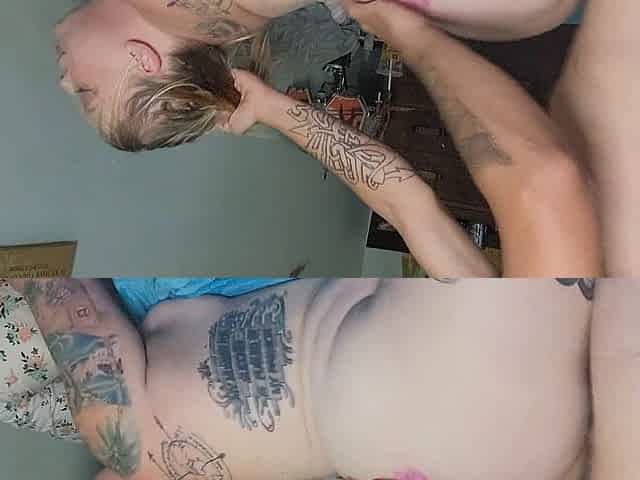 Sensual morning blowjob ends with a mouthful of cum for hot tattooed blonde MILF
