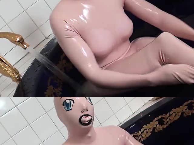 Tanja takes a bath in her latex sex doll costume