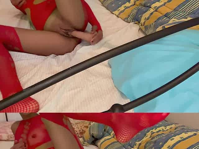 Sex doll makes her butt red and screw her twat until 1st SQUIRT