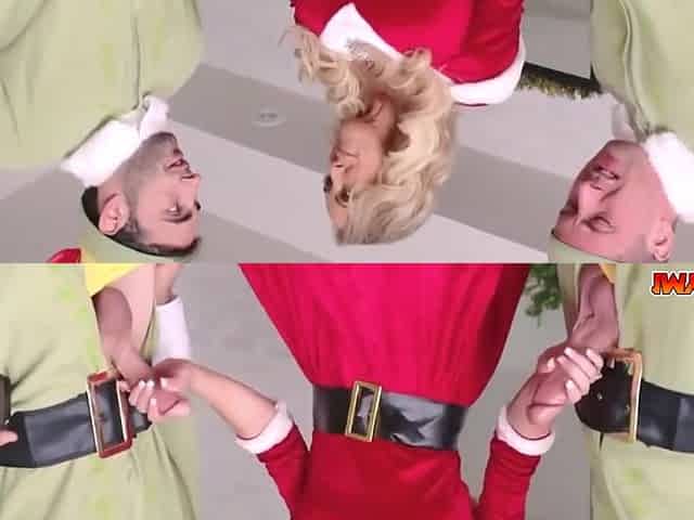 Sharing cumshot in a blonde threesome