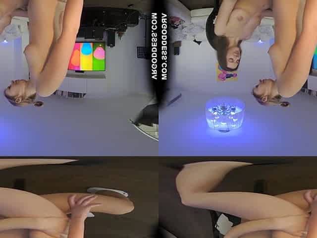 POV scene shows two astonishing blondes sharing a cock