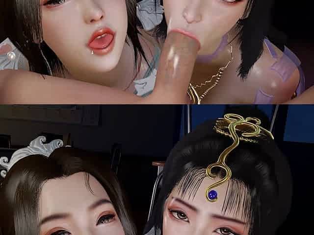 3D Two Horny Babes Sharing One Big Cock