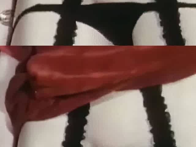 "The bitch is jerking off her clit with a massager."