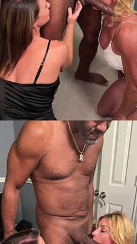 Hot fetish babes sharing a huge black cock