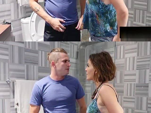 Teen Cassidy And Milf Alyssa Sharing Cock In Bathroom