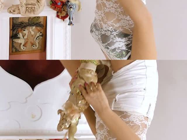 Video of seductive Abby Z pleasuring her shaved pussy and asshole