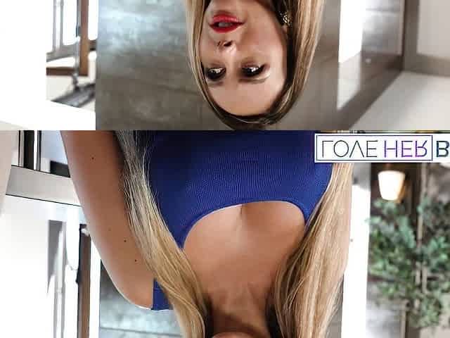 Beautiful busty blonde Natalia Starr is touching her wet shaved pussy