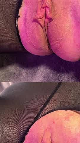 I'm Caressing My Wet Shaved Pussy Through a Hole in My Nylon Pantyhose