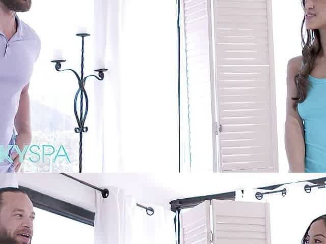 Hard fuck in the sideways pose with a long-legged brunette Britney Dutch