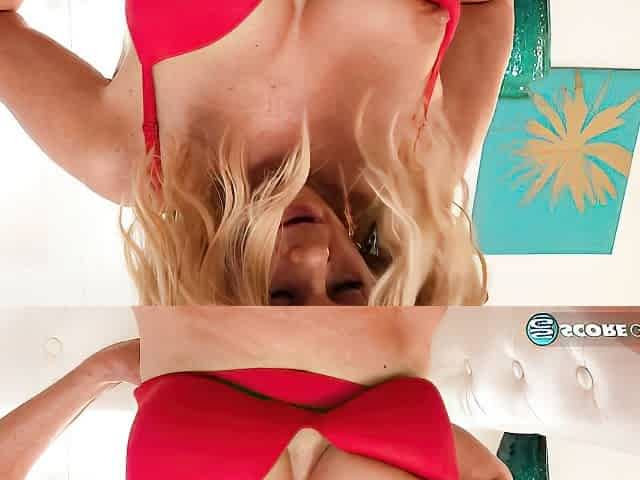 Shaved pussy blonde Tasha Reign with big boobs goes solo