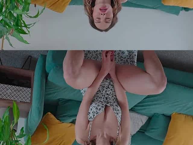 Solo brunette hair cutie Enchanting Fantasies plays with sex toy on the stool,in VR.