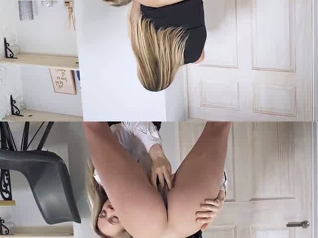 Blonde Kenzie Reeves fingers her pussy and shows her holes
