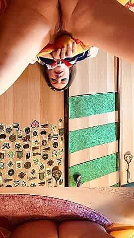 Nymeria Malfoy clothed as Snow White pleasures herself with an apple!
