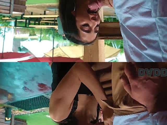 A cute sexy babe AbbyBaddy armed with a huge dildo in a sucking and fucking action in VR.