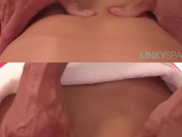 Japanese massage for a bare-breasted, shaved beauty Kumaben1