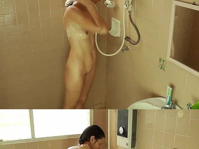 Shower chores of Julia V Earth. Bath, shaving, face cleaning