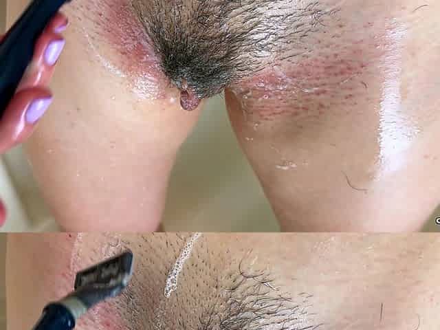 I was shaving my balls when my wife came. I helped her shave her cunt. Dry shaving sounds. Climax.