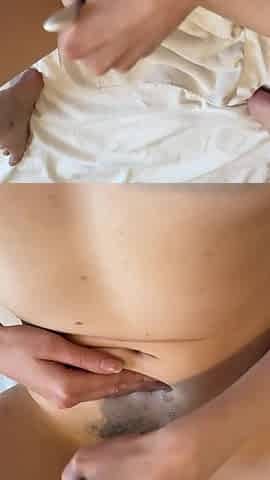 Honey rubs cosmetic massage lotion oil on her pretty legs Shaving legs washes butt and cunt two full