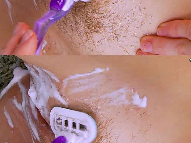 Shaving a Hairy Pussy with a Trimmer and a Razor with Shaving Foam!
