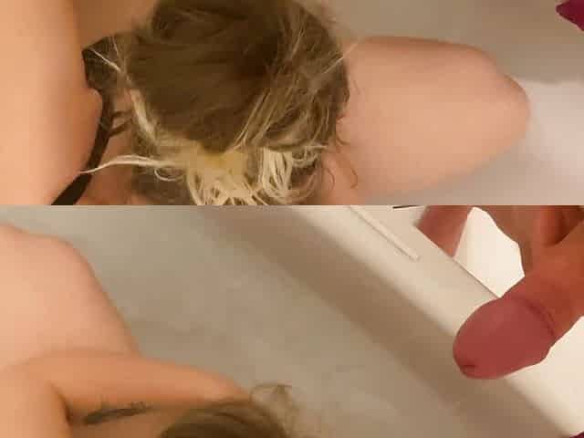 "Masturbating doggystyle in the bathroom and cumming"