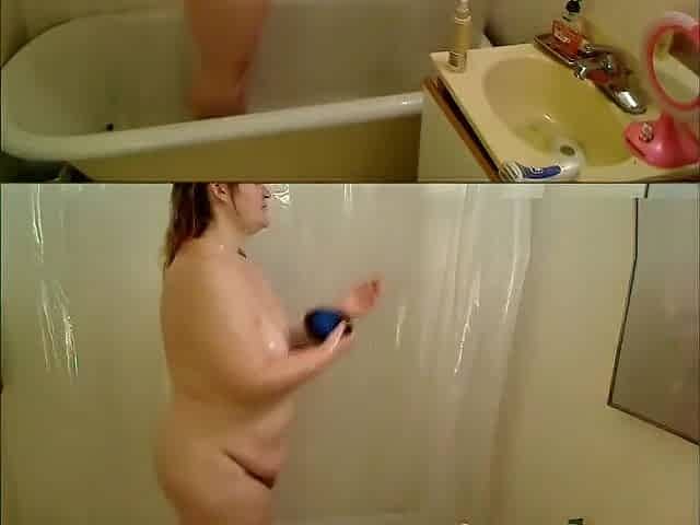 Voyeur POV big beautiful woman Showering and Shaving Shaggy Snatch