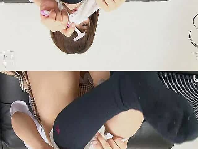 Japanese college girl shaves her cunt and squirts like a fontain on the sofa