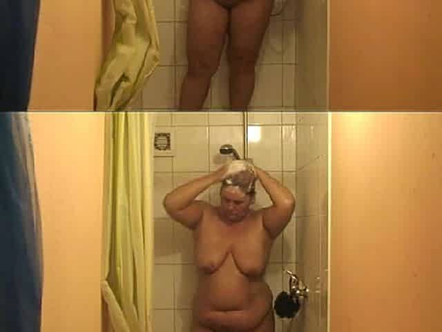 Sexy milf showering, washing hair, shaving armpits and pussy