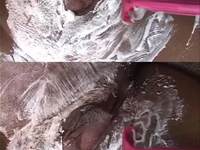 Shaving a Hairy Pussy with a Trimmer and a Razor with Shaving Foam! Close-up!