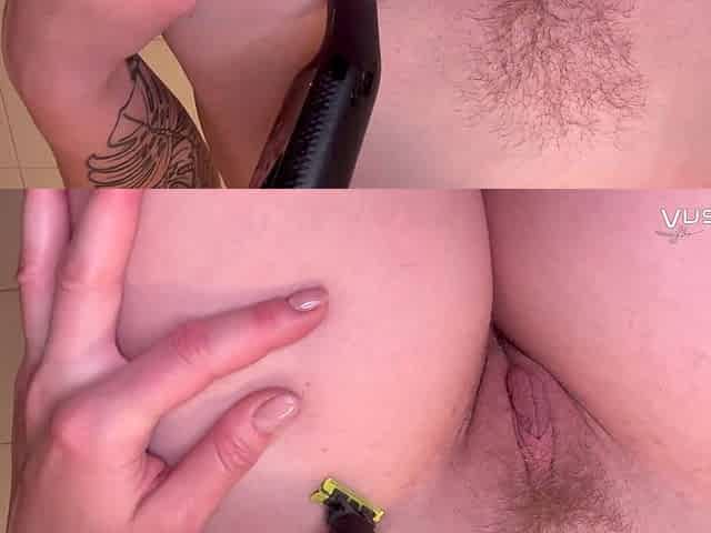 Shaving Hairy Pussy with a Trimmer and a Razor! Runway!