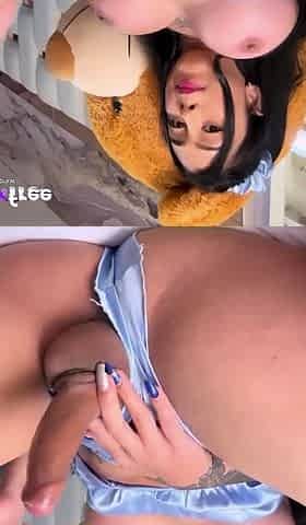 Trans Gótica en bikini hace oral sex intenso a sextoy