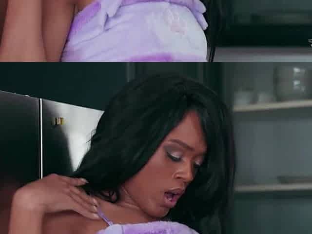 Gorgeous Tranny In Black Dress Fuck Monster Dildo