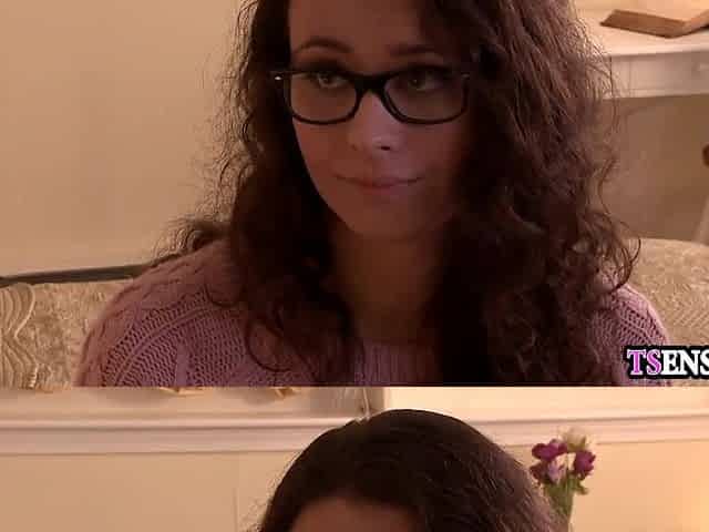 VRB Trans: Hot T-girl Bangs Doggy in Glasses